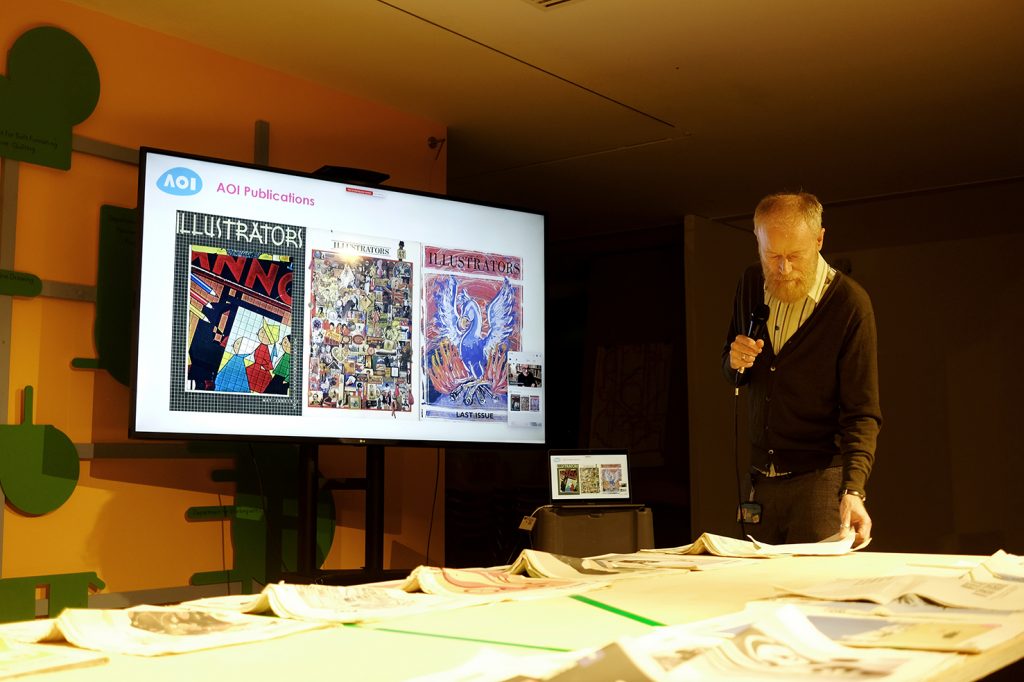 Currently the printed publication archive in its complete form (1973-2021) is held in the offices of the AOI and remains under-explored. This lively event prompted the outpouring of memories of those who contributed to these rich publications and sparked the curiosity of others, who were perhaps only dimly aware of its existence. Noting the many exchanges and animated conversations, ISH is now pursuing possibilities to transform this publishing back-catalogue into an accessible and living illustration archive, contributing to the future understanding of illustration histories. Watch this space!